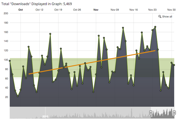 Okay, so November is the first month where I cracked the 3,000 download count.