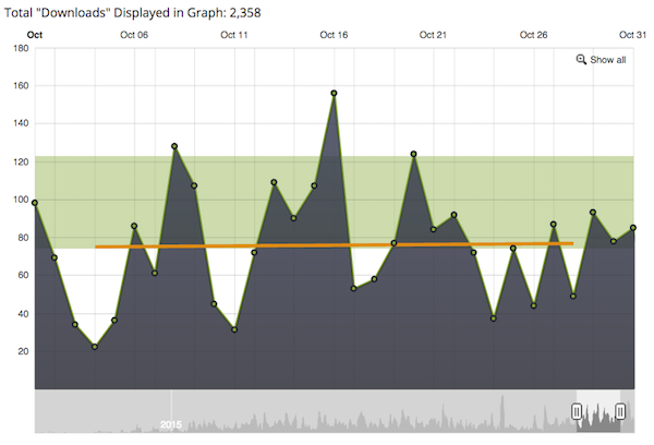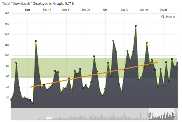 As you can see, the overall trend line is pretty steady. I’m expecting the same number of new downloads for new podcast episodes that come out in November.