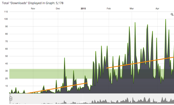 Since, I’m only on the $15/month plan I only have access to basic statistics, like the total number of downloads and the downloads per episode, but the $20/month plan will give advanced stats regarding geographic data, and the types of technology used (Chrome/Firefox/iTunes) to download the podcast.